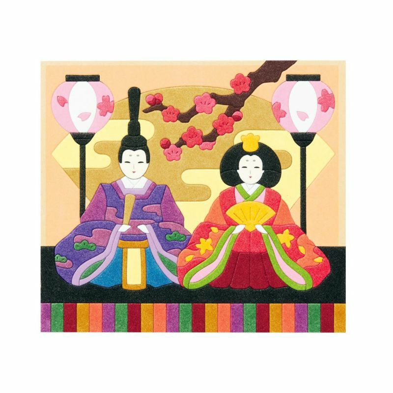 キラキラ輝くパウダーをかけて色鮮やかな親王雛の絵を描きます。