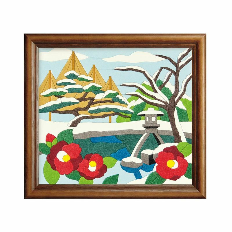 冬らしい兼六園の雪吊りを14色のパウダーを使用して表現します。