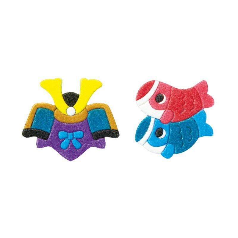 砂絵の要領で初めてでも手軽に楽しめるパウダーアート。こどもの日の定番「兜」と「こいのぼり」のマグネットです。お好みでパウダーの配色を変えて楽しめます。