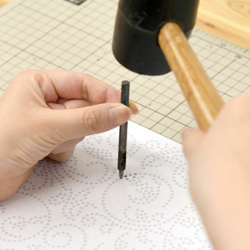 型紙に合わせて●の部分をポンチで開けるだけで作ることが出来ます。