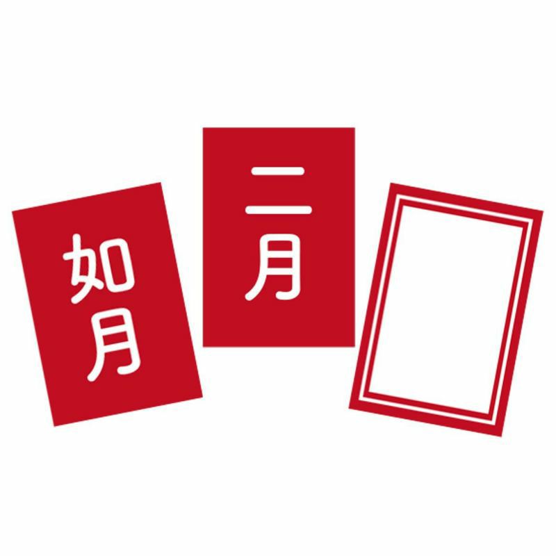 絵柄の左下の落款は「如月」「二月」「文字なし」の3種類から選んで貼ることができます。説明書から切り離せるようになっています。