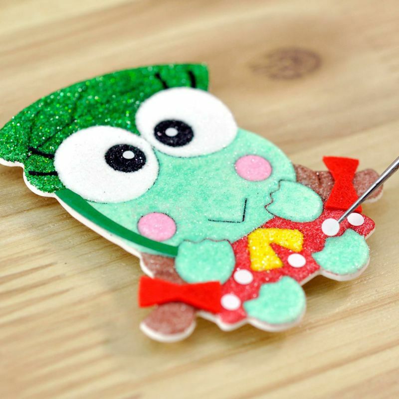 下絵は型抜き済みで、てるてるの目やけろりーぬの白目は貼る部分にはあらかじめ印が付いています。