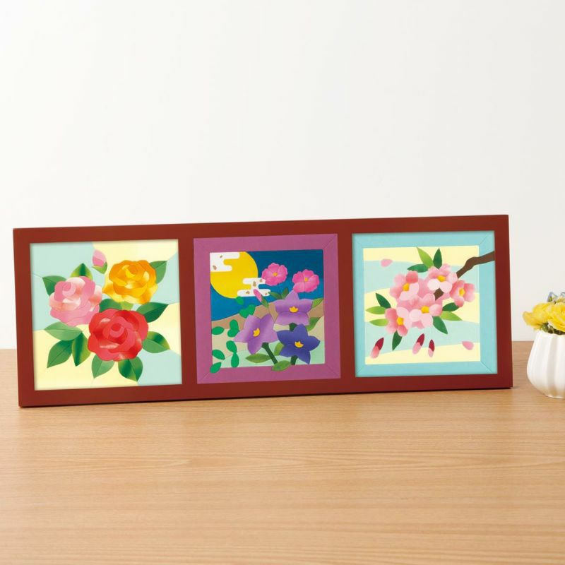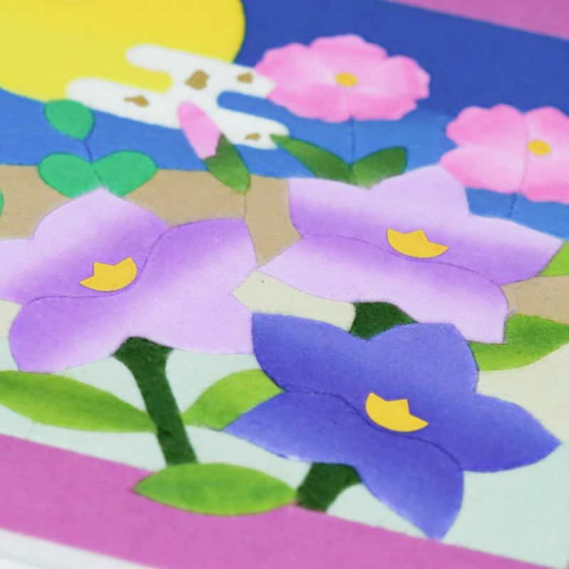 職人が一枚一枚染めあげた国内産の和紙を使用しています。「板締め染め」や「ぼかし染め」など13枚もの和紙を使って秋の花々を表現します。