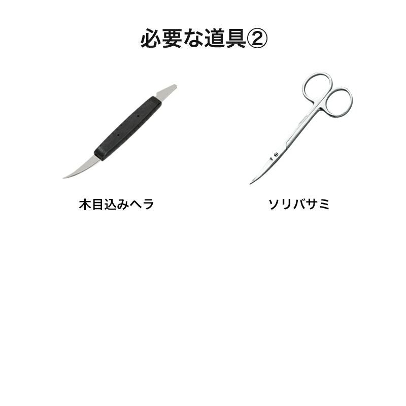 - ソリバサミ、木目込みヘラ、ボンドタッチ、クラフトチョキ、ホチキス、専用目打ち、ピンセット