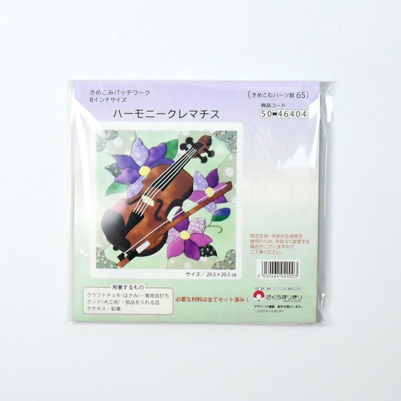「楽器の女王」のバイオリンに「つる植物の女王」のクレマチスを組み合わせたエレガントで優美な絵柄。別売りの額に入れるとより作品が際立ち、上品に飾れます。額装イメージ(51-8額)