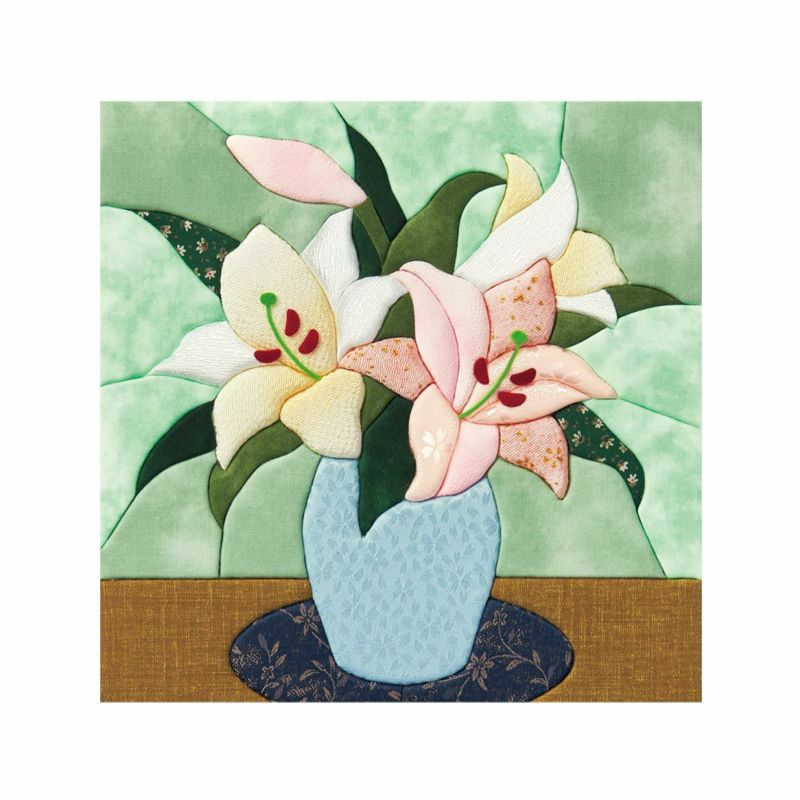 落ち着いた色の背景に、白とピンクの上品な色合いの百合の花が、お部屋を優しく彩ります。
