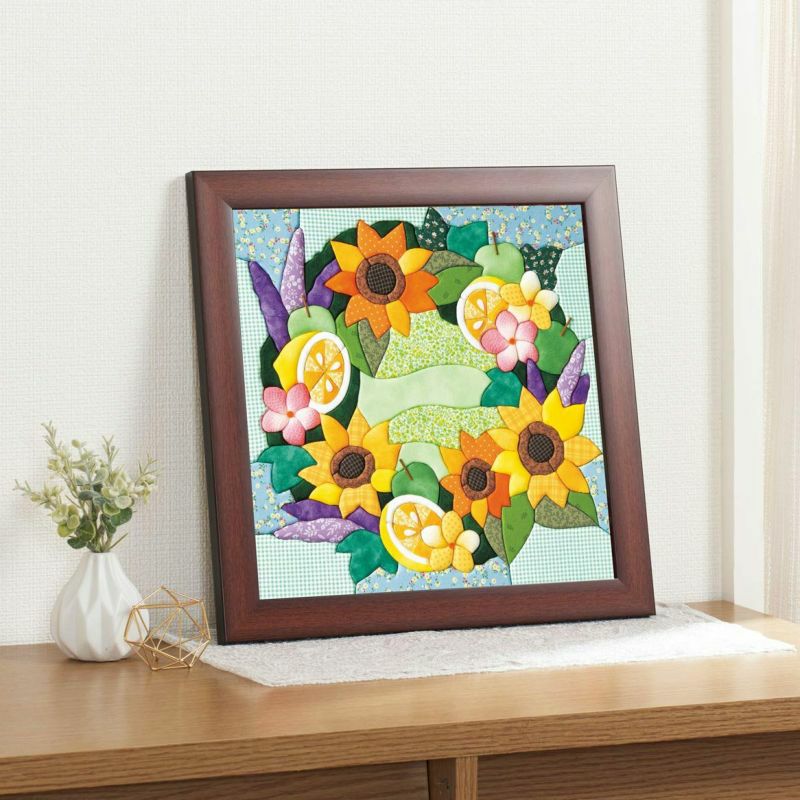 夏の花を詰め込んだ色鮮やかな花々のリース飾りは、別売り額に入れて飾るとお部屋も心も明るくなります。額装イメージ(55-6額)