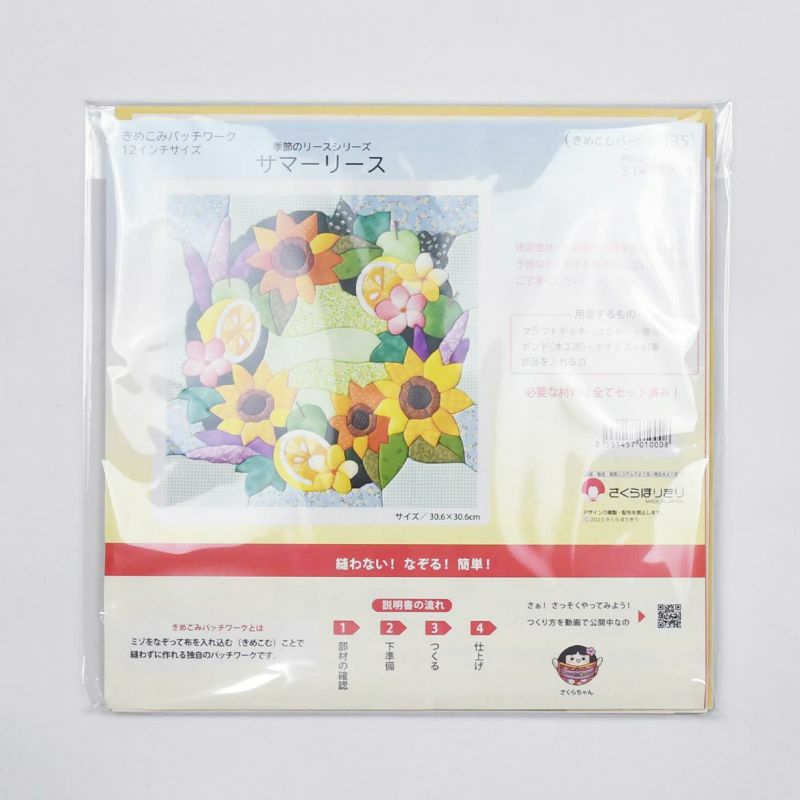 ちりめんやコットンなど素材の異なる布をはじめ25枚もの布を使用してリースを表現します。