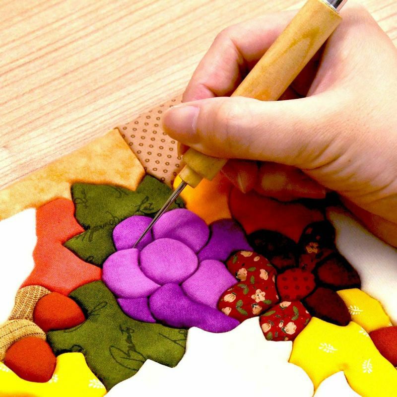 - 型紙シールを布からはがし、指定のきめこみボードに布をきめこんでいきます。