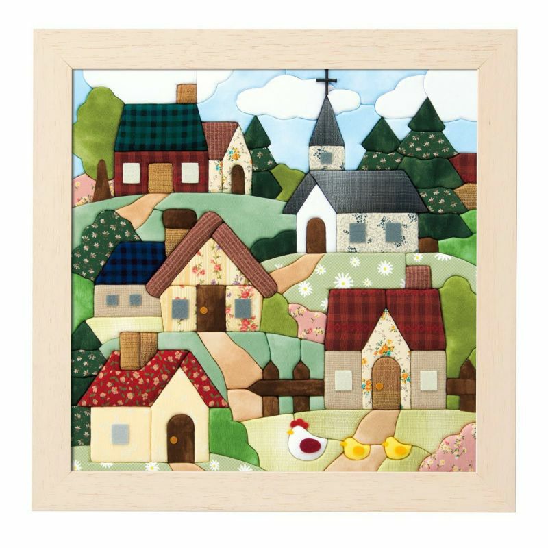 様々な柄布で可愛らしく表現されたキルトハウスの絵柄を飾って、お部屋を彩りませんか?
