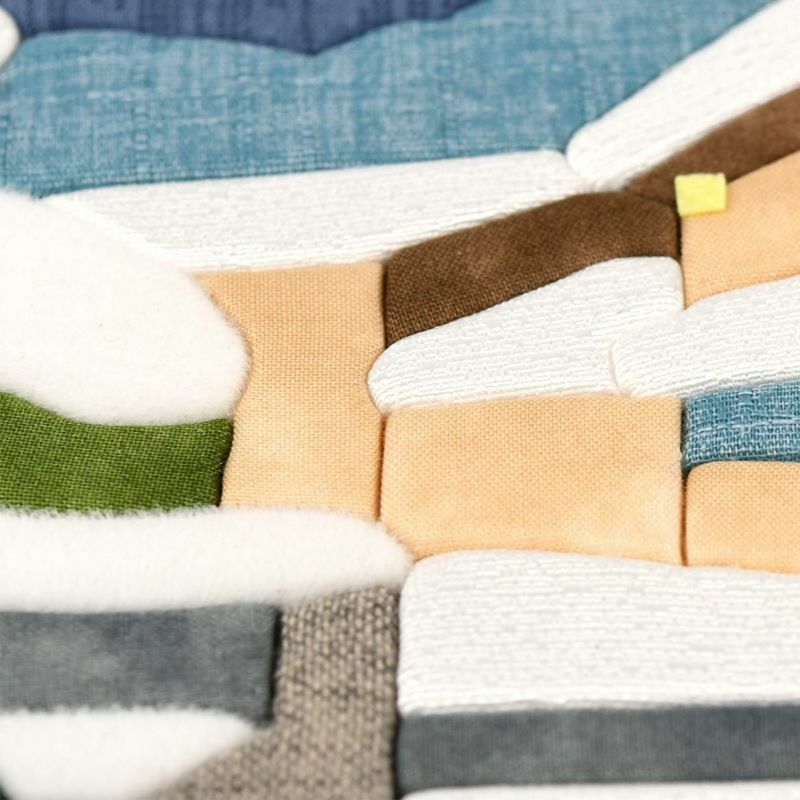30種類の様々な布を使用しています。多様な布を組み合わせて、パッチワーク的な布遊びを存分に楽しめます。