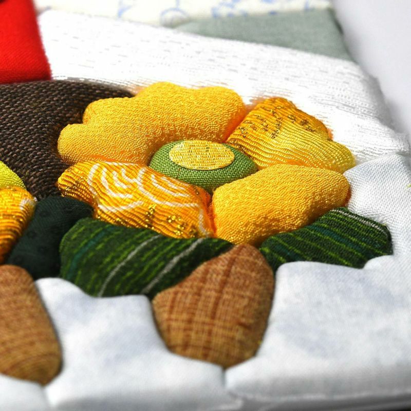 コットン・ちりめん・ジャガード・先染木綿など30種類の布を使って風景を表現します。雪だけでも7種類もの布を使用しています。