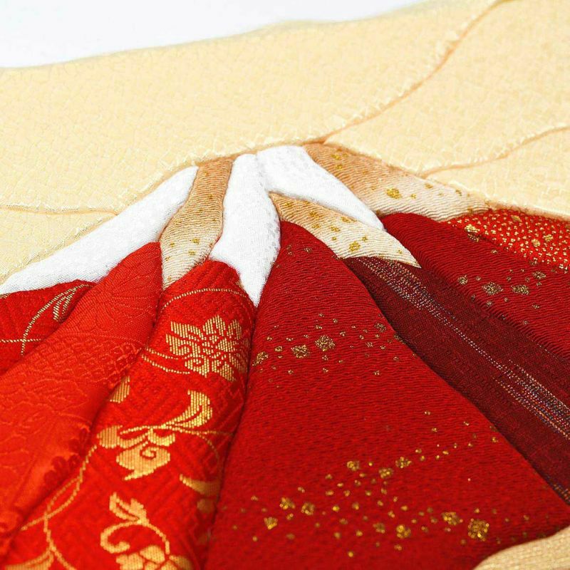 赤富士は、ちりめん布や金襴布の様々な赤色を使い、豪華で立体的に仕上げます。