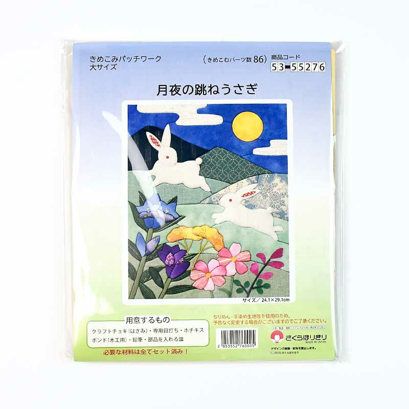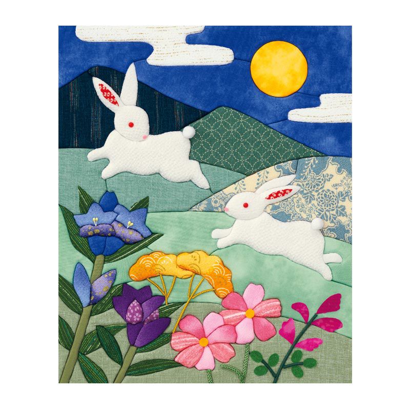 月夜の跳ねうさぎを上品な和柄で作る趣深い絵柄。別売りの額に入れて飾ると作品が引き立ち、お部屋をシックに彩ります。