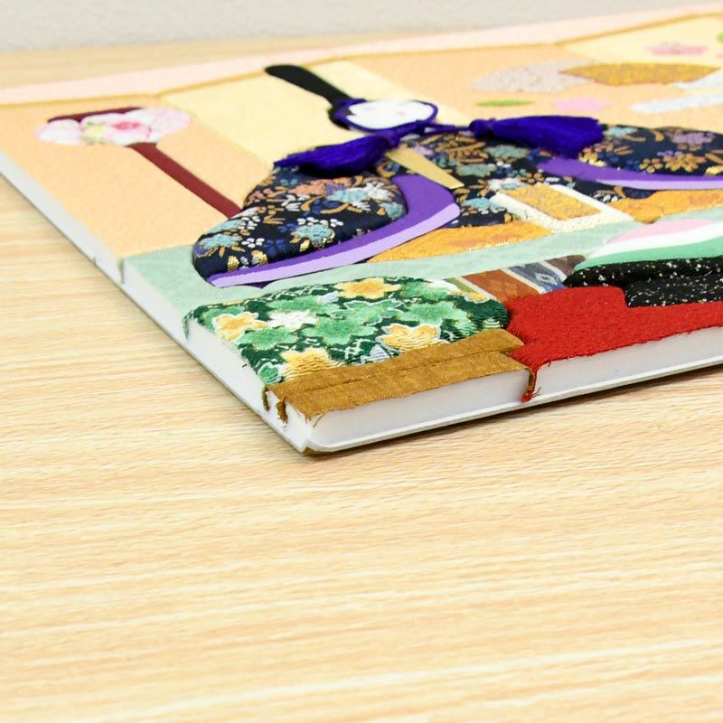 男雛のお着物は「繁栄」や「豊かさ」意味する桜柄、そして女雛には桜とともに、穢れや災厄を流す意味のある観世水の柄の金襴布です。それ以外の部分にはちりめん布やジャガード、コットンなども使用し、様々な布をきめこんでいく楽しさも感じていただけます。