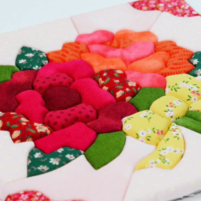 13枚もの鮮やかな布を使って作ります。すべてきめこみやすいコットン生地。仕上げの細かい作業もないので初めての方でも安心して作れます。