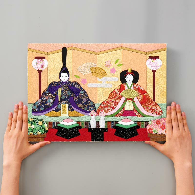 省スペースで飾れるコンパクトなお雛さま。金襴布のお着物が目を惹く豪華で美しい雛飾りは飾る場所をとらないので贈り物にも喜ばれています。