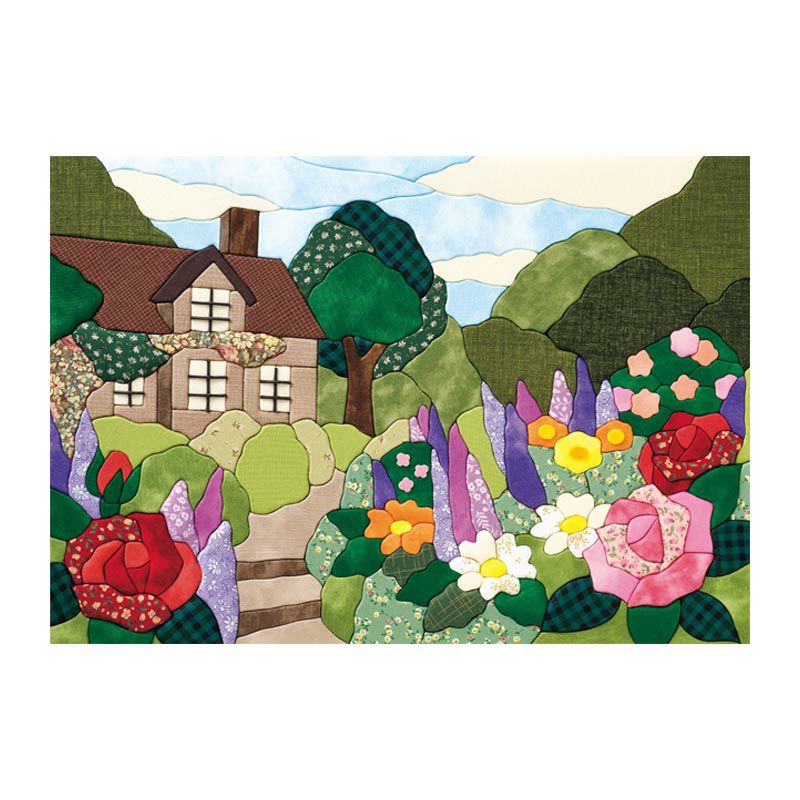 イングリッシュガーデンだからこそ映える布選びで、184個のパーツを一つひとつきめこんでいく楽しさと作りごたえのある作品です。温かみを感じる絵柄に触れながら癒しのひと時を過ごしませんか?