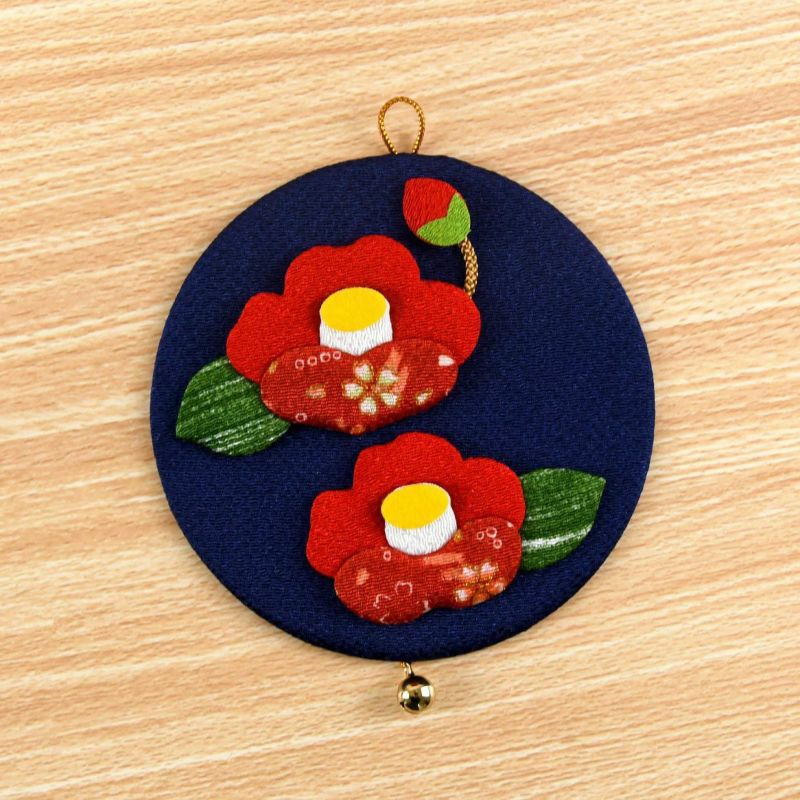 紺色の土台に、赤の椿がとても映えて色鮮やかです。