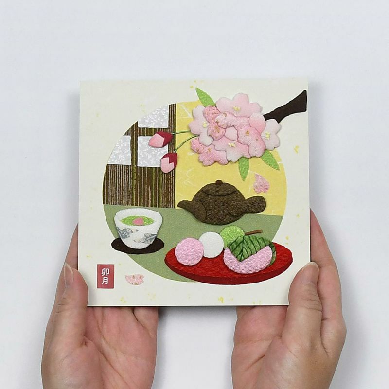 絵柄の左下の落款は「卯月」「四月」「文字なし」の3種類から選んで貼ることができます。説明書から切り離せるようになっています。