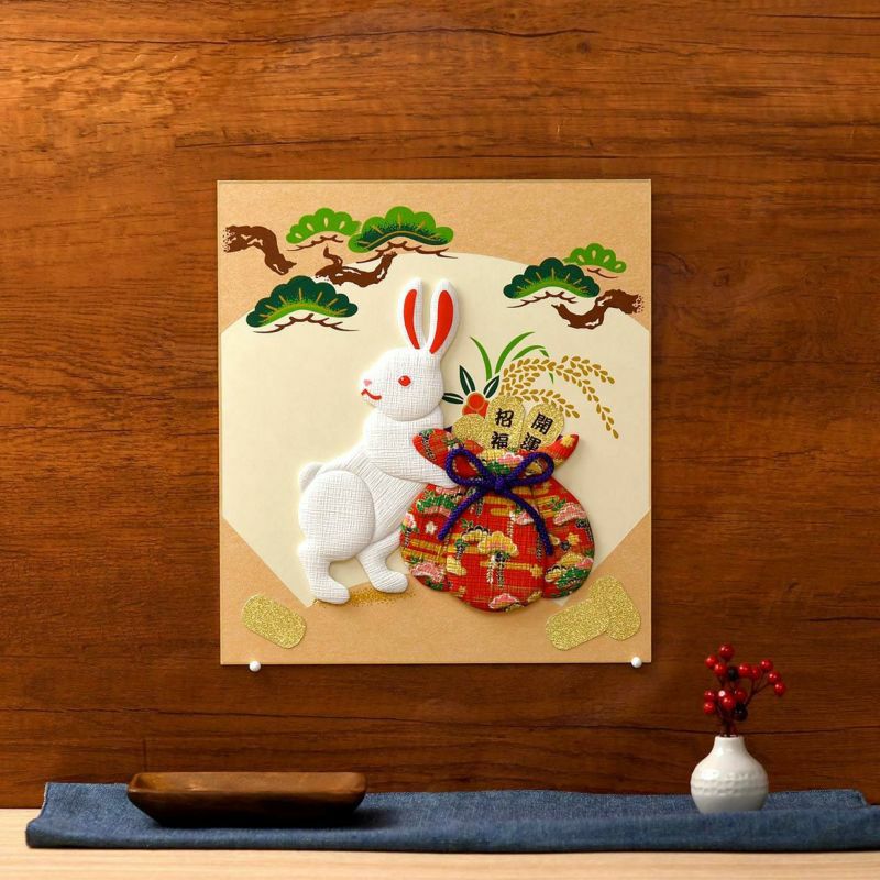 うさぎは、その穏やかな様子から「家内安全」を、飛び跳ねる姿から「飛躍」を表すと言われ、古くから縁起の良い動物とされてきました。また子沢山なところから「豊穣」や「子孫繁栄」の象徴であり、長い耳は「福を集める」とも言われます。幾重にも縁起の良いうさぎを作り、飾って、明るい一年へと弾みをつけてはいかがでしょうか?