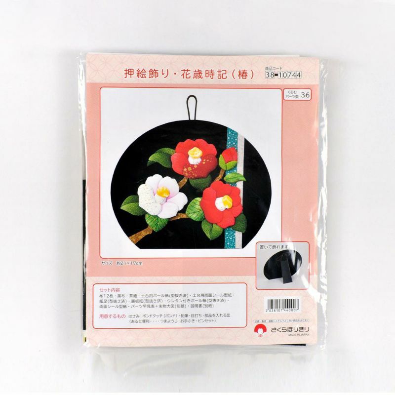 黒地に映える色鮮やかな布押絵の花。やわらかくてボンドのつきが良いちりめん布でふっくら仕上げます