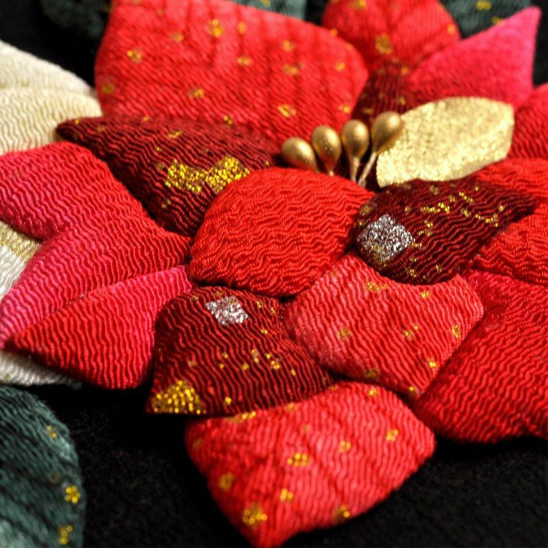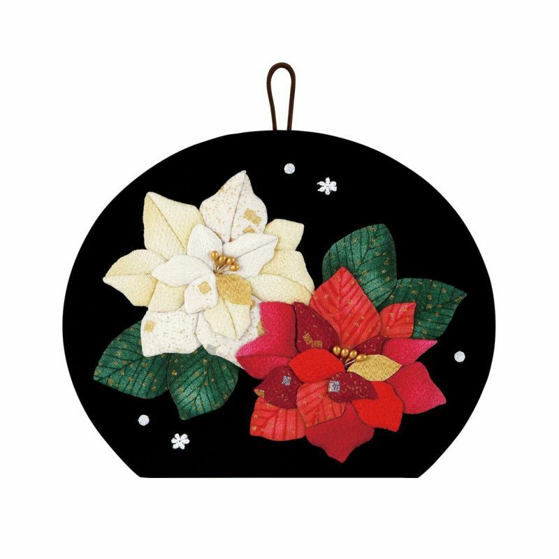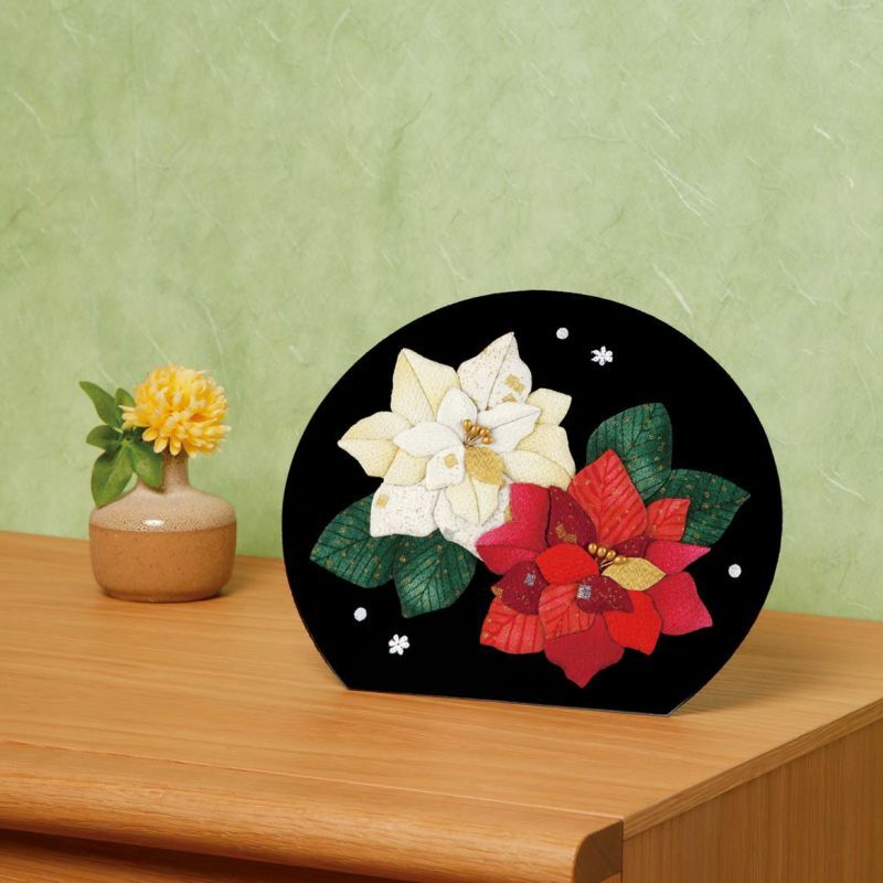 赤と白の大きなポインセチアが黒い土台に映えます。