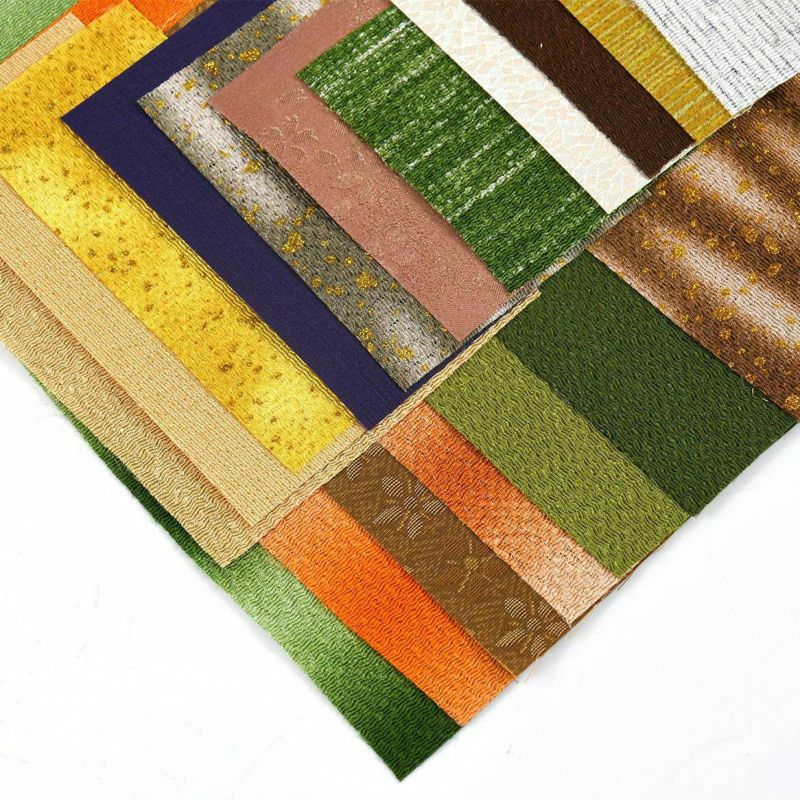 柿はちりめん布のぼかし部分を活かして作ります。夕焼け色の実がなった柿の木は、なんとも郷愁を誘います。