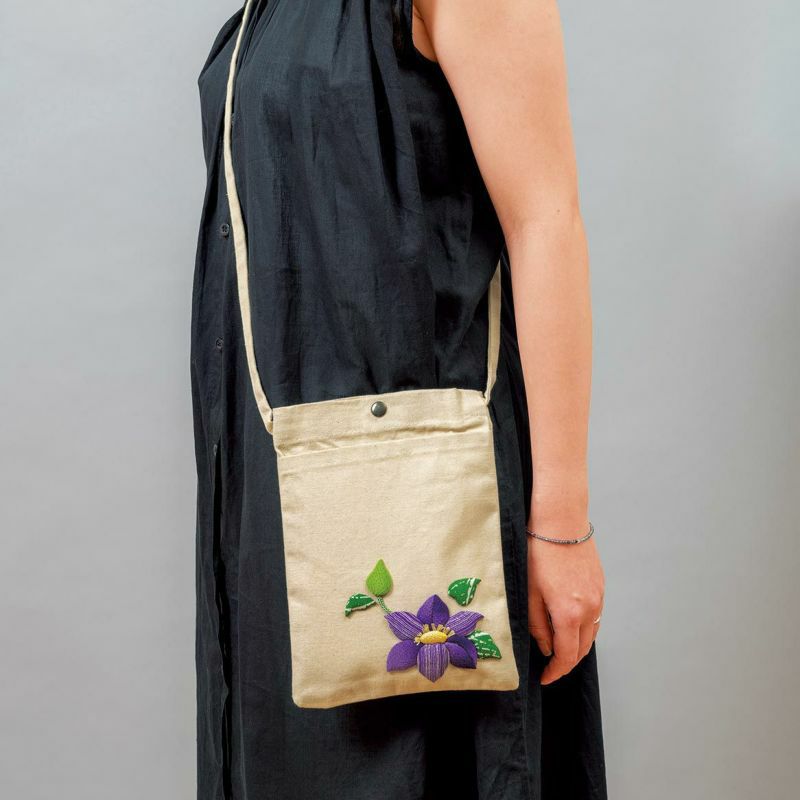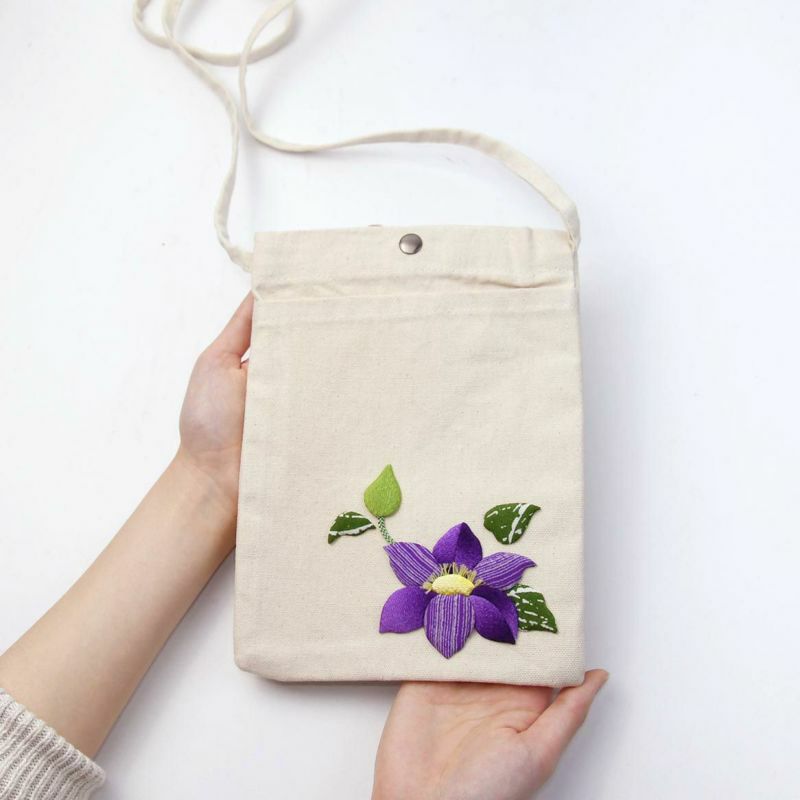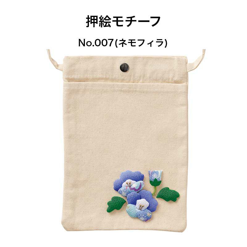 作るのは押絵のモチーフのみです。既製品のショルダーバッグに貼り合わせて完成です。