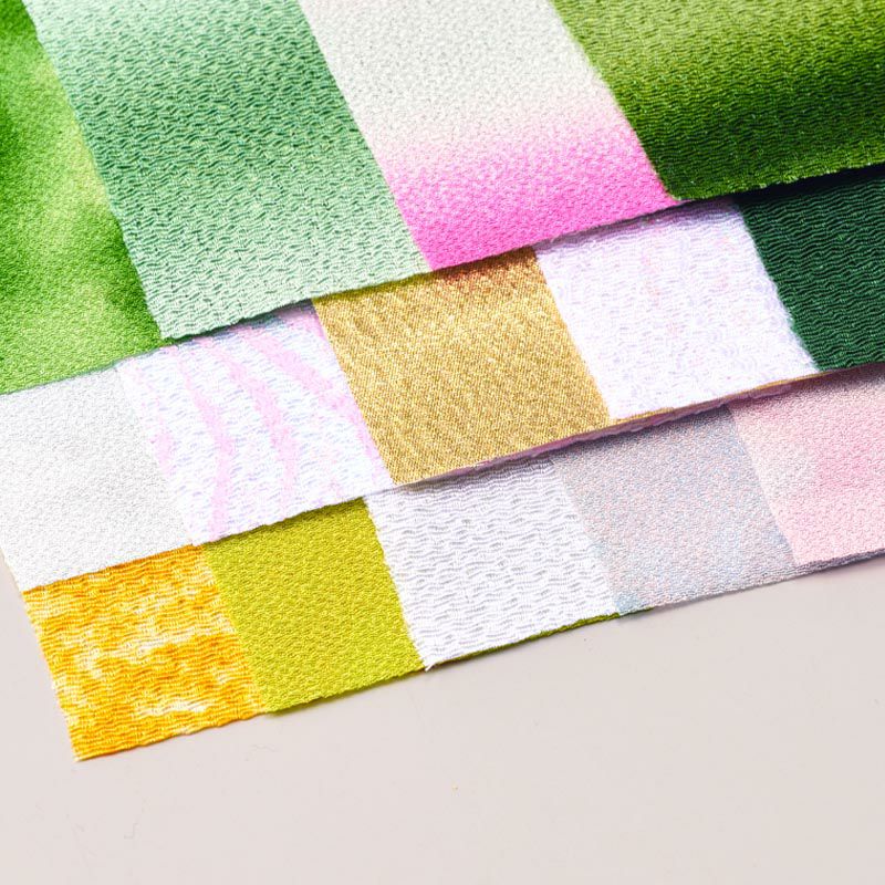 蓮の花や葉にはちりめんのぼかし布など14枚もの布を使い繊細な蓮を表現します。