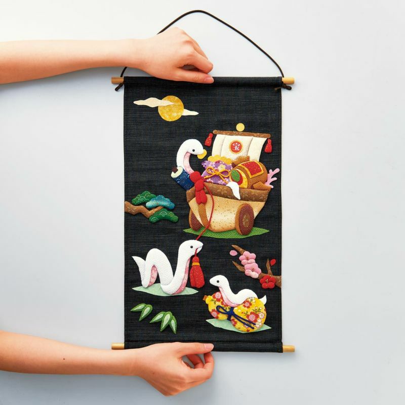 へびの腹や宝船など所々に金彩の入ったちりめん布を使い、華やかに仕上げます。