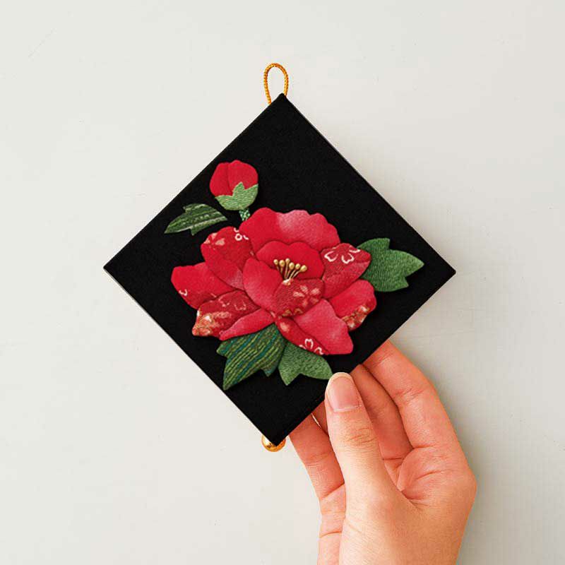 それぞれの花が持つ優雅で凛とした雰囲気を、ぼかしや柄が美しい13枚のちりめん布を使用して表現します。