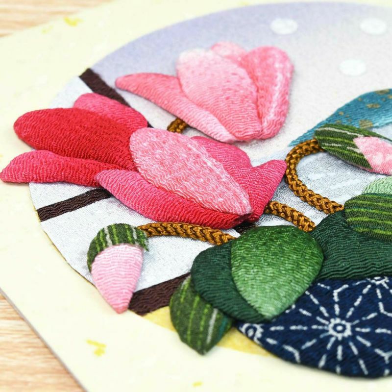 「くるみ絵」とも呼ばれる日本の伝統手芸・押絵の繊細な立体感を、気軽に楽しめます。