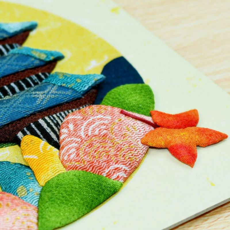 「くるみ絵」とも呼ばれる日本の伝統手芸・押絵の繊細な立体感を、気軽に楽しめます。