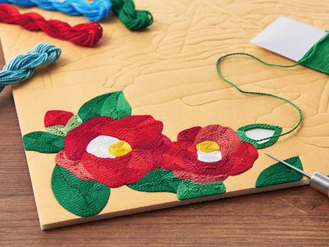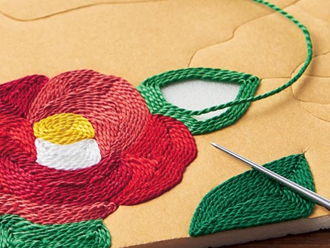 専用の接着ボードに、フランス産の刺繍糸をくるくると貼り付けていくだけで、まるで刺繍を施したような作品が完成するキットです。