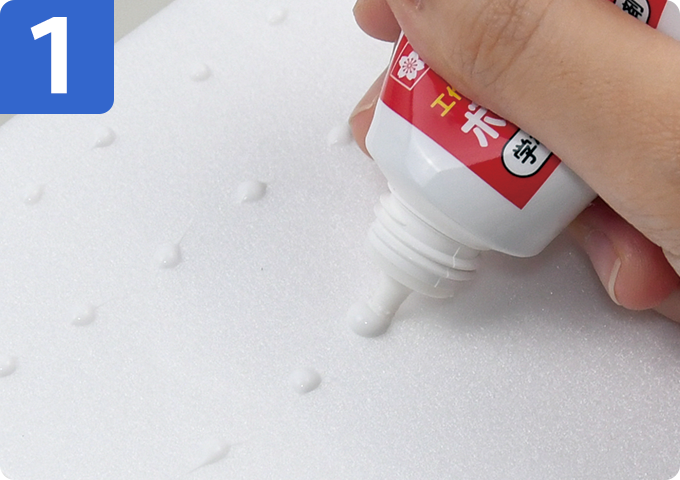 きめこみボードの裏にボンドタッチを薄く塗り、裏板紙を貼り合わせます。