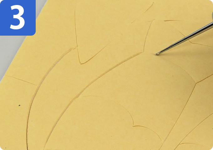 ボードのミゾを専用目打ちでなぞって深くします。