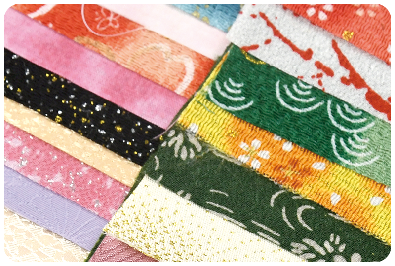 ちりめん布やコットン、高級感のある金襴布など、絵柄に合わせて多種多様な布を使用します。