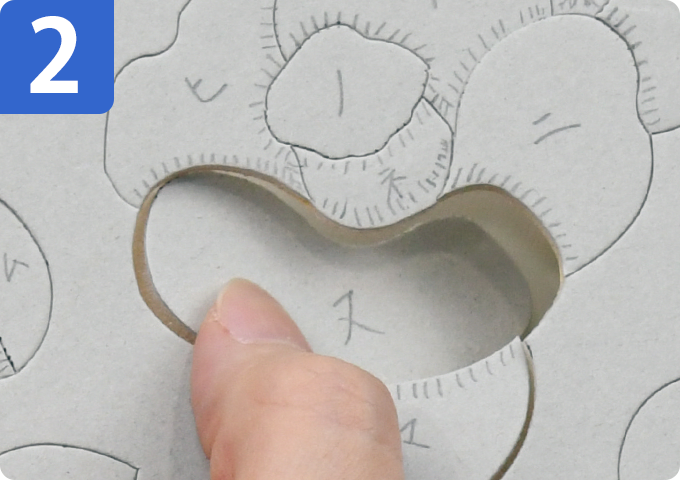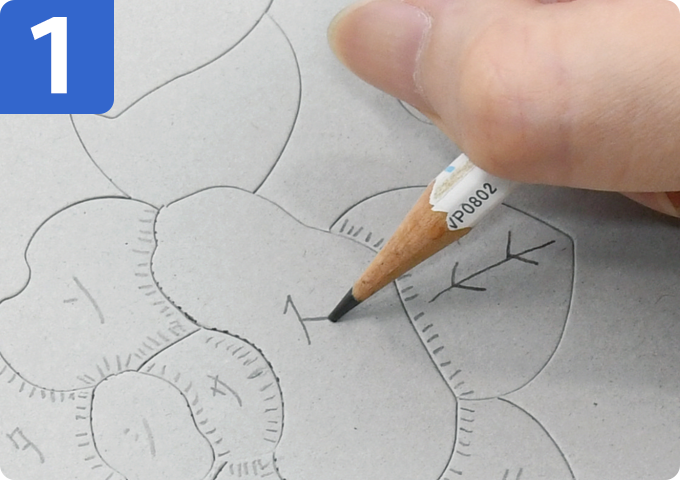 説明書を参考に、ウレタン付きボール紙に記号と斜線を書き写します。