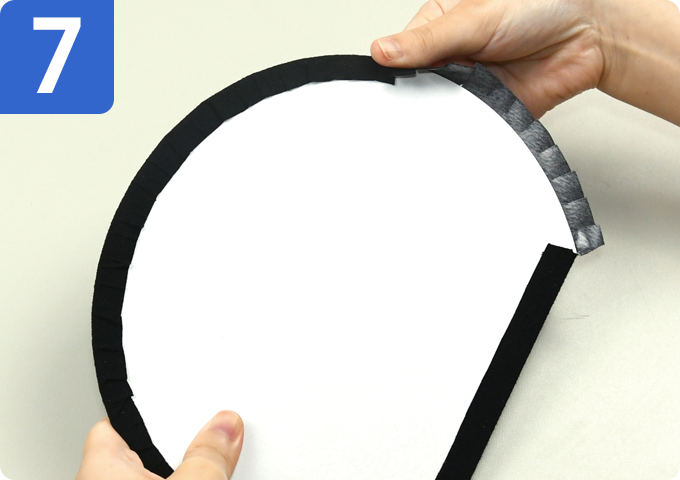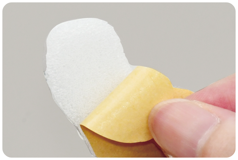 ウレタンの面は、裏紙をはがすと粘着のあるシール状になっています。そのまま布に貼れて便利です。 -