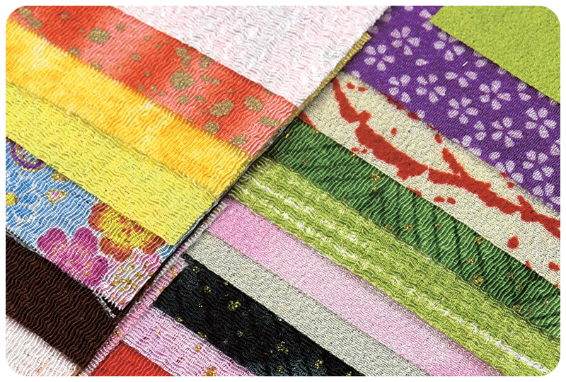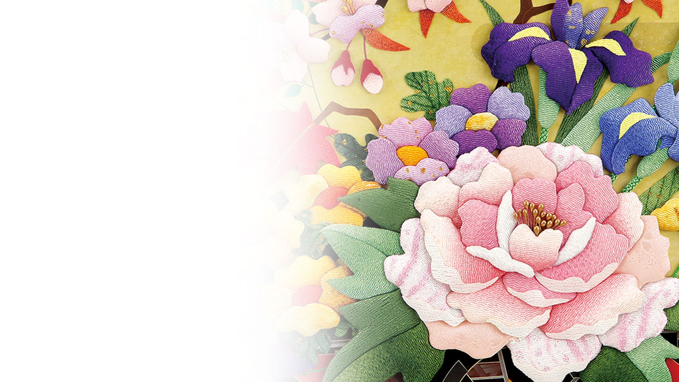 ちりめん布を中心に、しなやかな手触りと色鮮やかな美しさが特徴の和布を使って作るので、完成度の高い作品となります。 -