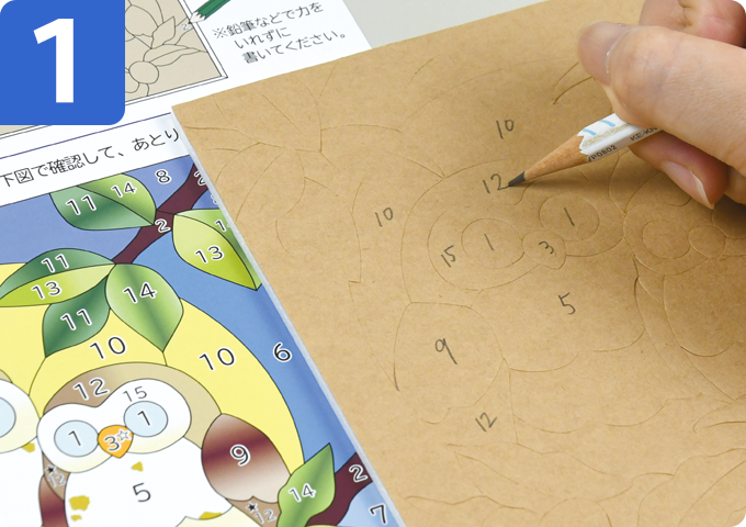 説明書の参考図を見ながら、あとり絵ボードに番号を書きます。
