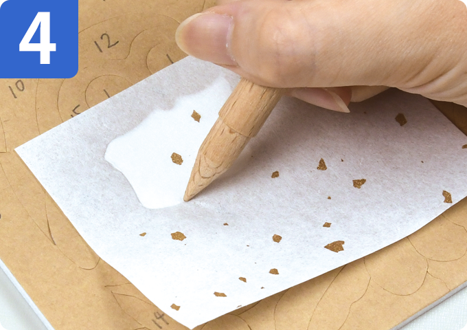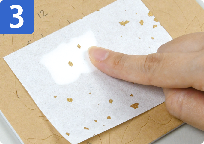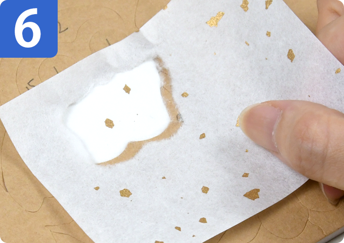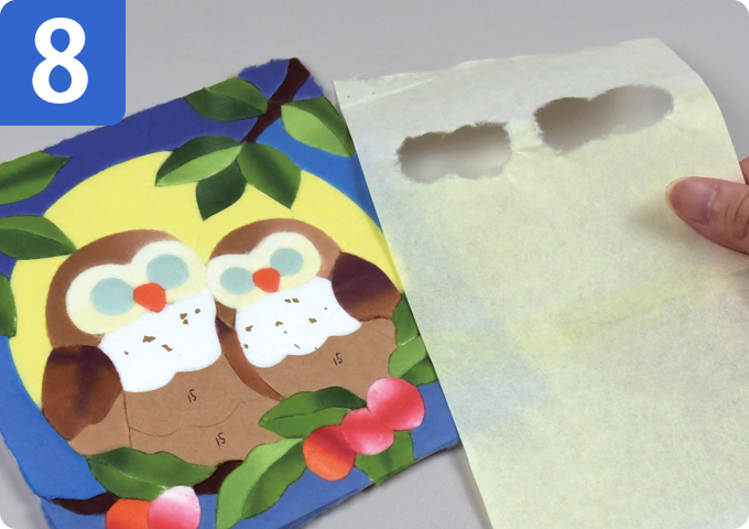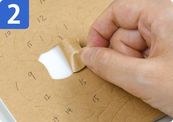 番号に合わせて、和紙を上紙を剥がしたところに置き、貼り付けます。