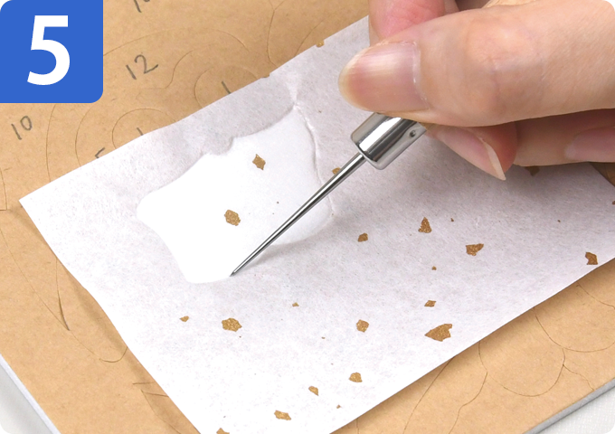 4と同様に専用目打ちの先端で2~3回なぞり、和紙を切っていきます。