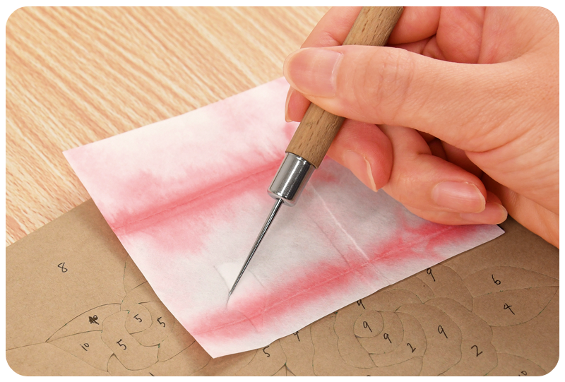 専用の目打ち1本でやさしく和紙をなぞって完成するのは和紙の温かな風合いと美しさがつまった一枚。