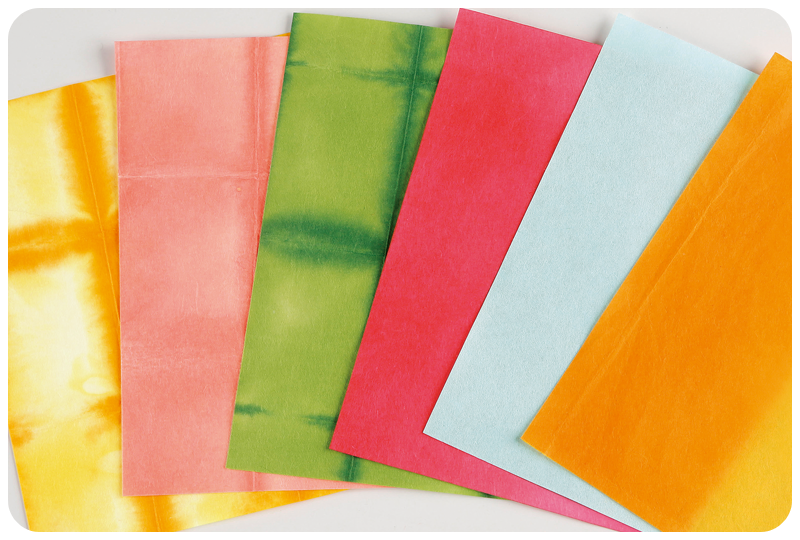 一枚一枚、職人の手で染めた国産の和紙を使用します。板締めやぼかしの風合いを活かした趣のある絵を作ることができます。