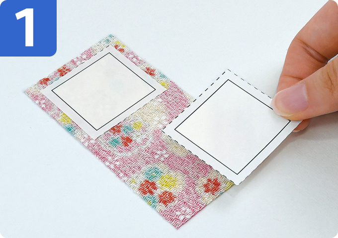 布を貼り終えた下絵に型抜き済みシートを重ねた途端に絵柄が浮かび上がります。魔法のような仕上がりに感動の声が上がります。