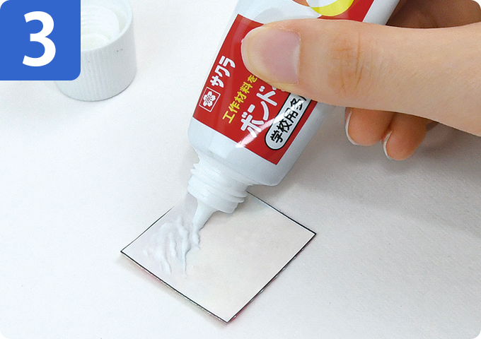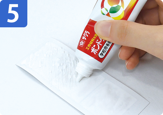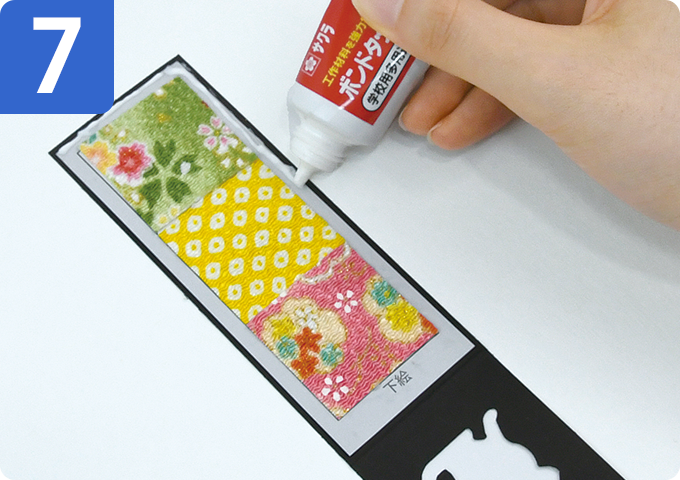 布でくるんだパーツの裏にボンドタッチを塗り、下絵に直接貼ります。