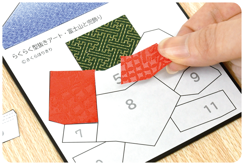 布を下絵に貼っていく工程は、パズルのような楽しみ方で、脳トレにも活用いただけます。 -