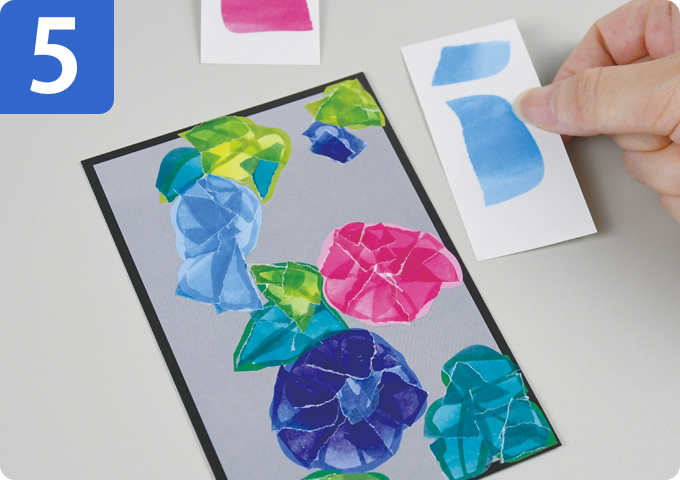 ちぎったカラーシールを下絵シートに貼ります。